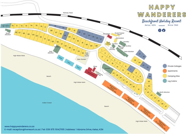 Our private resort situated on 500m of unspoilt beach in Kelso, just 65 kms South of Durban since 1963. Opt for a self-catering apartment, private log cabin, or camping and caravan site, all metres away from our pristine beach. With a stunning restaurant and bar, facilities for the whole family, and a functions venue for all occasions, Happy Wanderers is the perfect location for a memorable holiday.